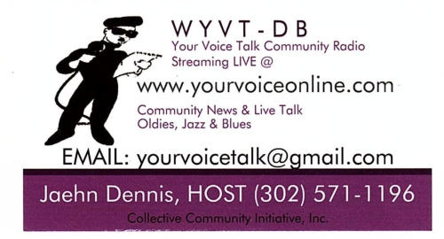 Thank you for your visit to WYVT-DB, the internet radio station broadcasting LIVE in Wilmington, Delaware. Unlike terrestrial radio (AM/FM); internet radio is worldwide! You can access on your phone or computer from wherever you are at. You can download the “LIVE365” app and search WYVT to access; or you can click on the logo up top and take to right to the broadcast. We host lectures, community news and talk on community matters and concerns. If we are not on the air, please try back later. Please see the broadcast schedule below. Thank you for tuning in. B1